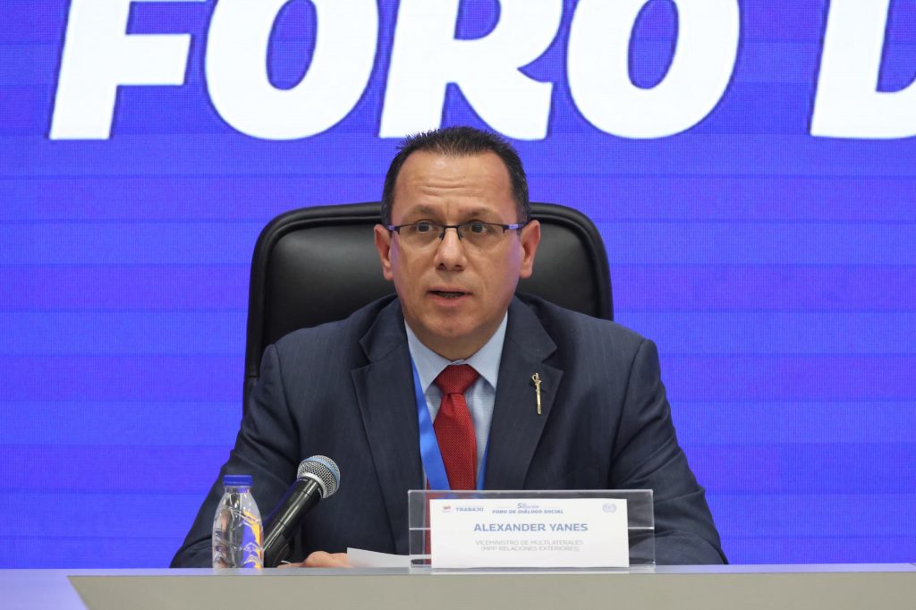 Entretanto, el viceministro para Temas Multilaterales del Ministerio del Poder Popular para Relaciones Exteriores, embajador Alexander Yánez, transmitió un saludo en nombre del canciller Yván Gil, en el que resaltó el compromiso del Gobierno Bolivariano con el desarrollo social, laboral e integral del país, así como la importancia de la Mesa de Diálogo Nacional impulsada por la presidenta encargada Delcy Rodríguez para alcanzar consensos laborales.